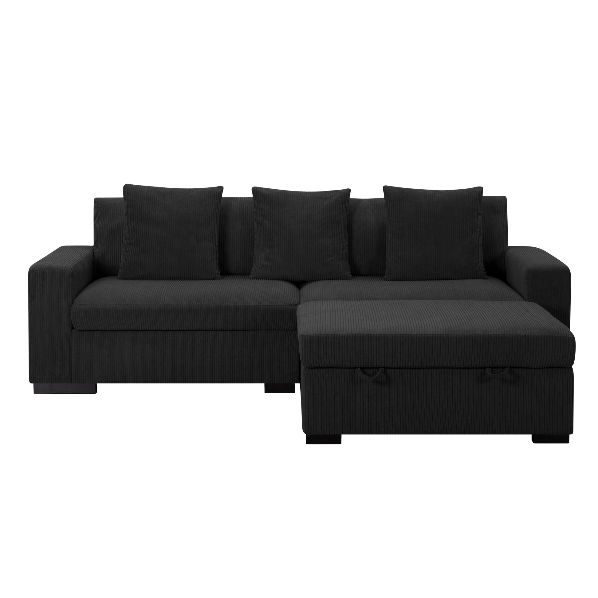 CAFORKP 103.5” Upholstered Modular Sectional Sofa, Deep Cushions, Comfortable Seating, Black