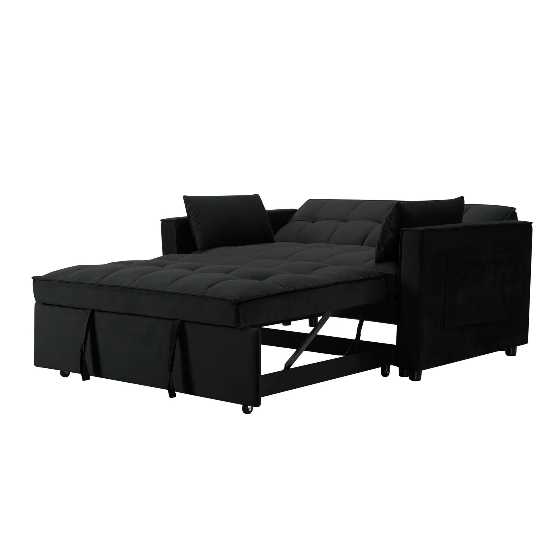 CAFORKP 55" Twin Size Pull-out Sleeper Sofa Bed with Reclining Back, Velvet Upholstery, Black