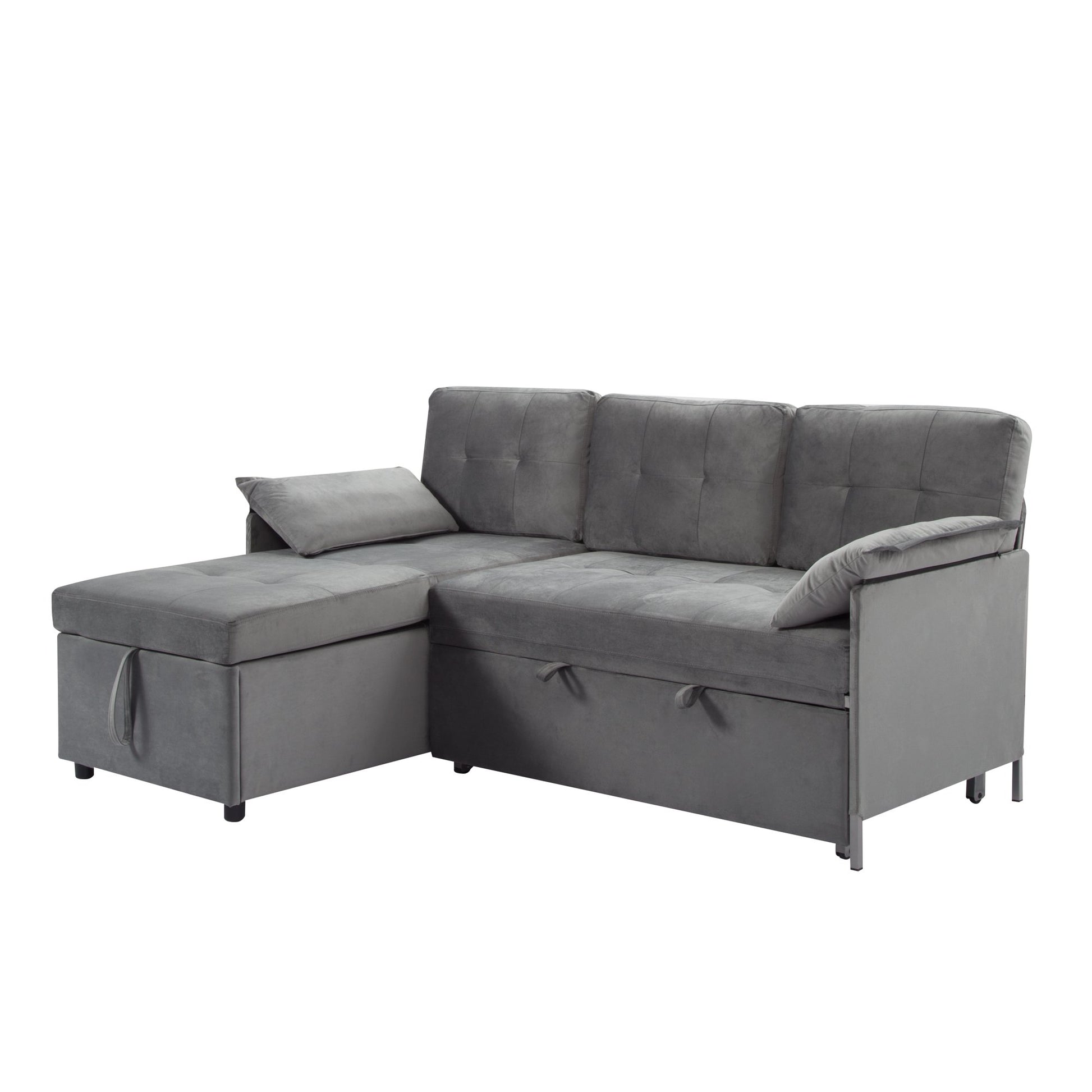 CAFORKP 77.6” Reversible Sectional Sleeper Sofa with Pull-out Bed and Storage Chaise, Velvet, Gray