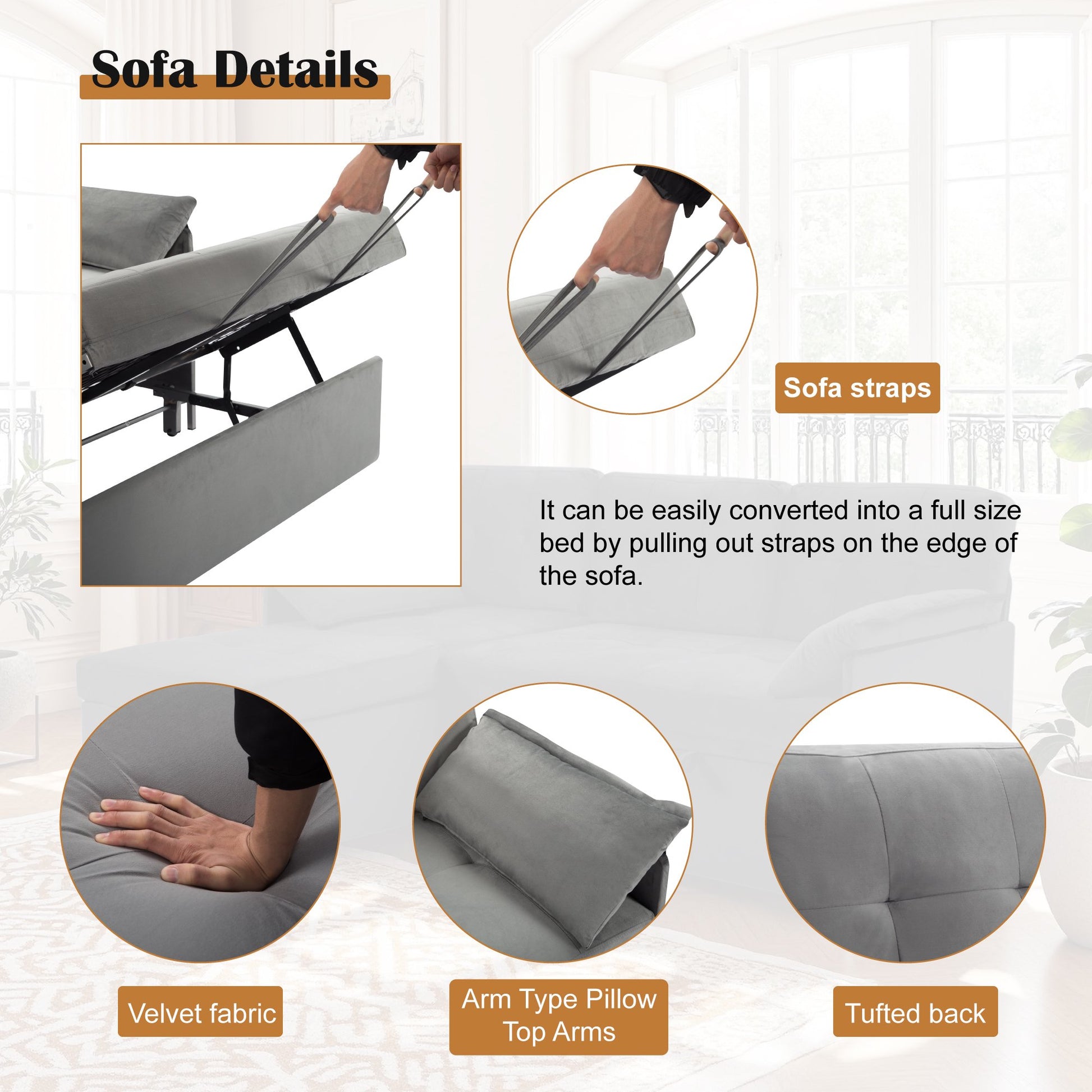 • 2-in-1 Sleeper Sofa Design: Easily converts from a stylish sectional sofa into a full-size sleeper bed, ideal for hosting overnight guests in apartments, dorms, or guest rooms.