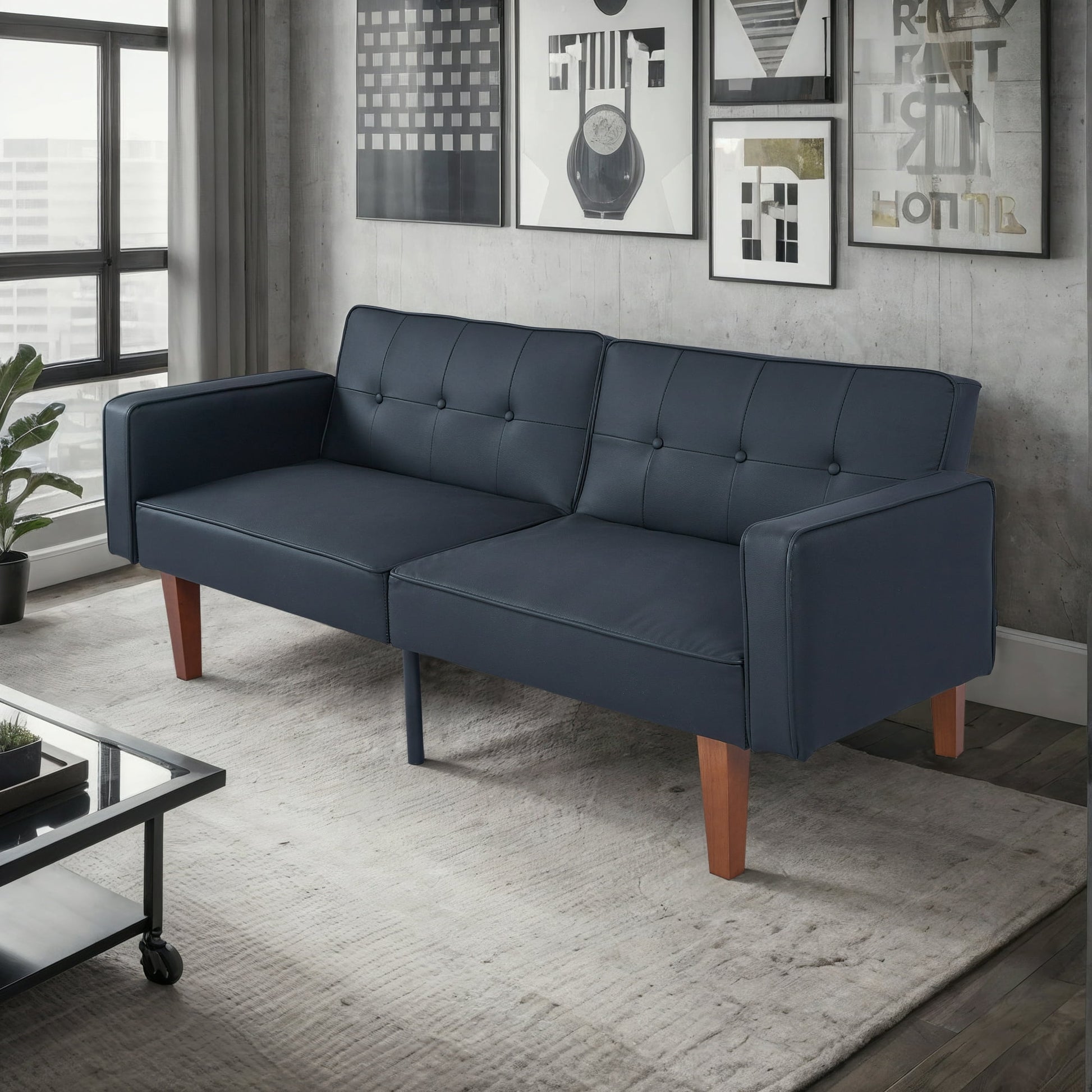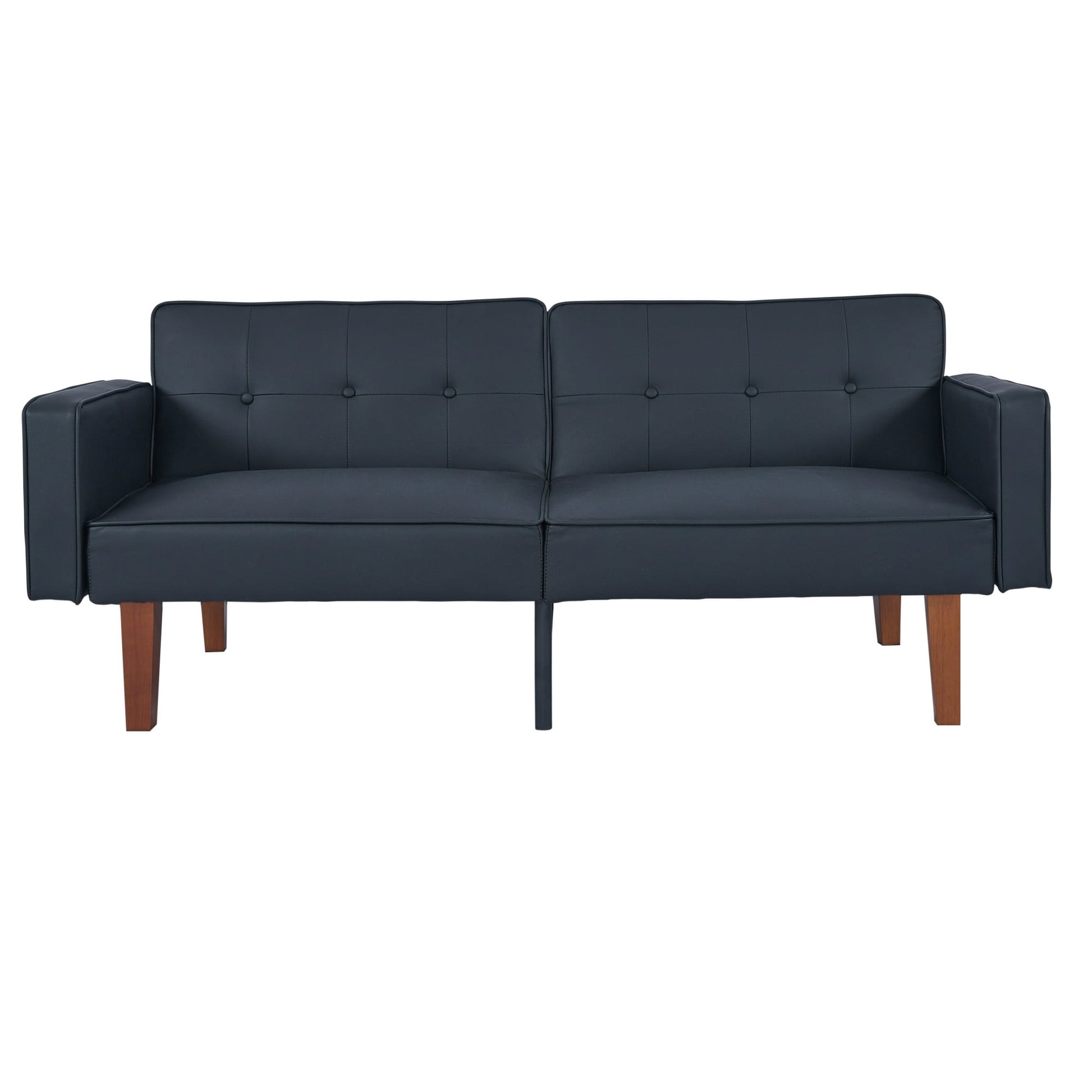 CAFORKP Black Faux Leather Sofa, Solid Wood Frame, Mid-Century Style, Foam & Spring Support