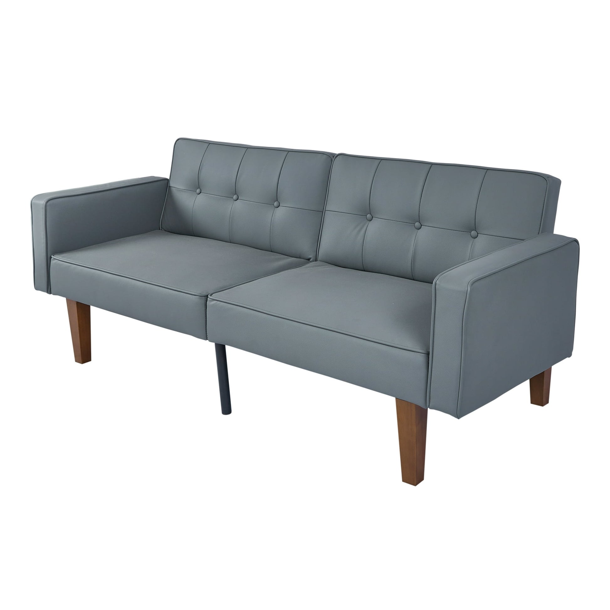 CAFORKP Gray Faux Leather Sofa, Solid Wood Frame, Mid-Century Style, Foam & Spring Support