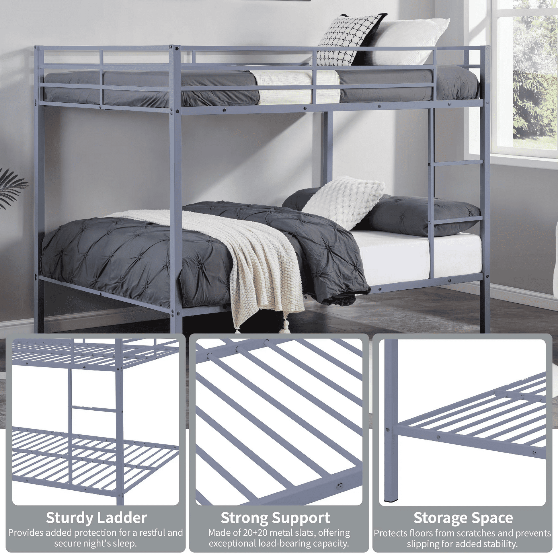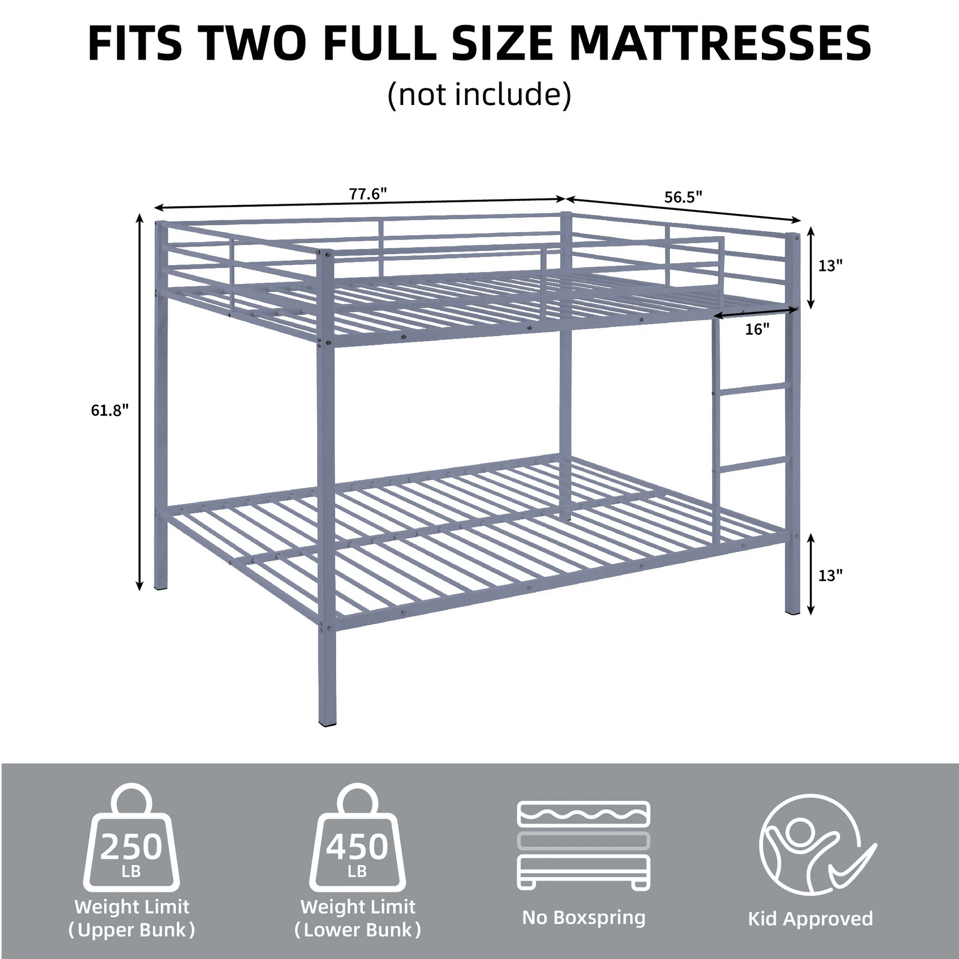 CAFORKP Heavy Duty Metal Full Over Full Bunk Bed with Ladder, Safety Guardrail & Steel Slats for Kids, Gray