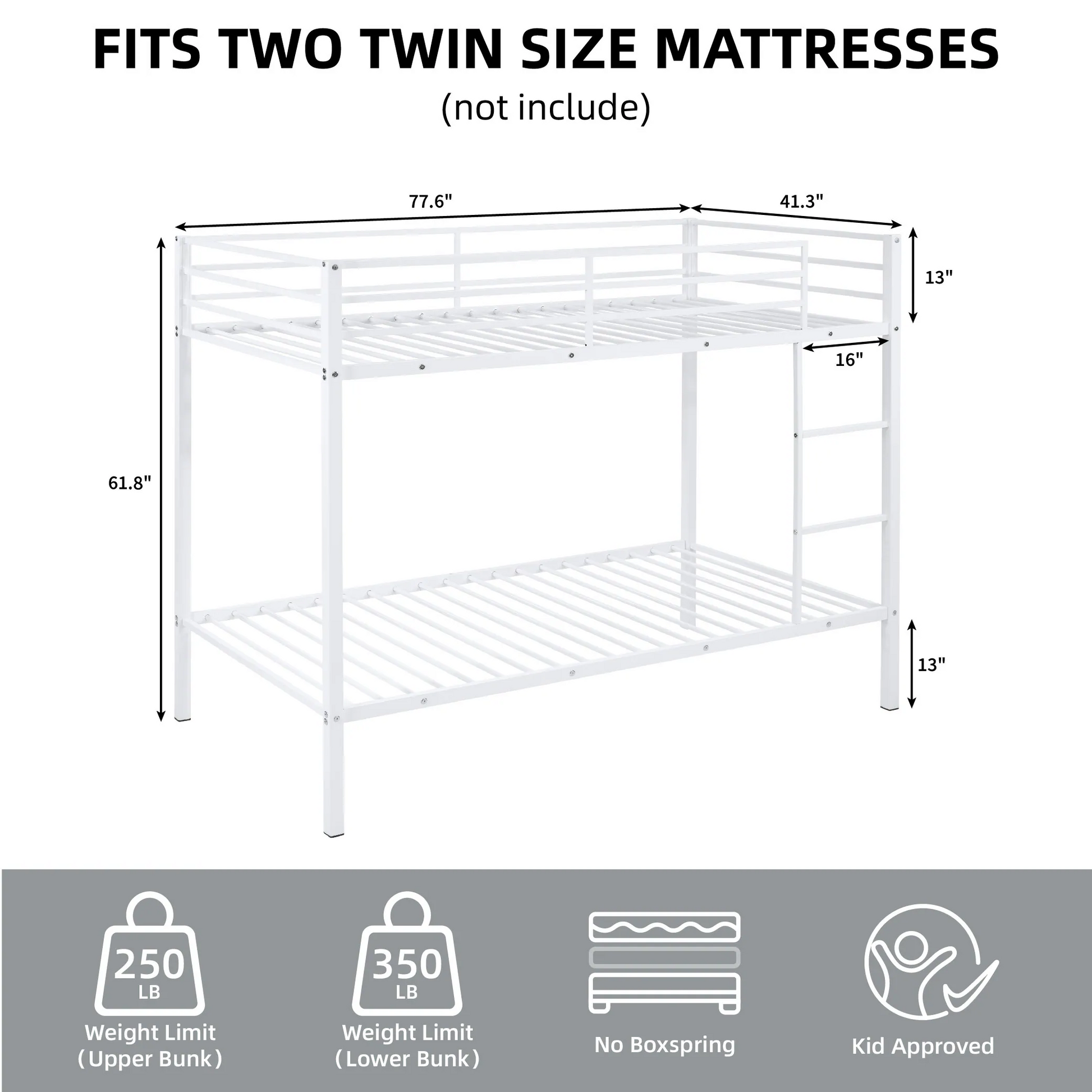 CAFORKP Metal Twin Over Twin Low Profile Bunk Bed with Ladder, High Guardrail & Steel Slats, White