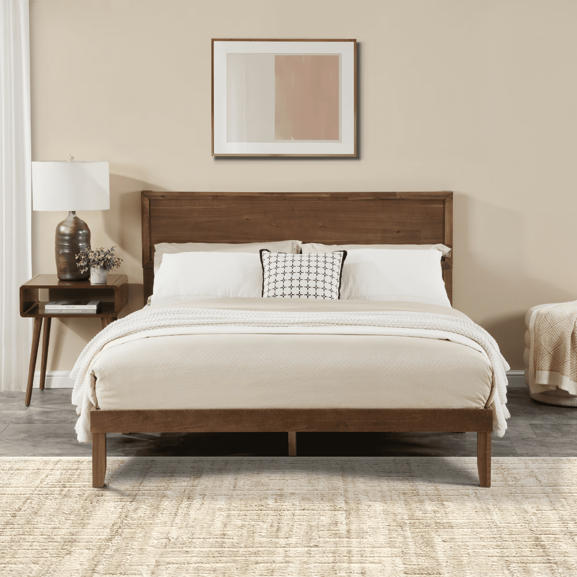 CAFORKP Modern Queen Oak Platform Bed with Headboard & Slats for Adults, Living Room