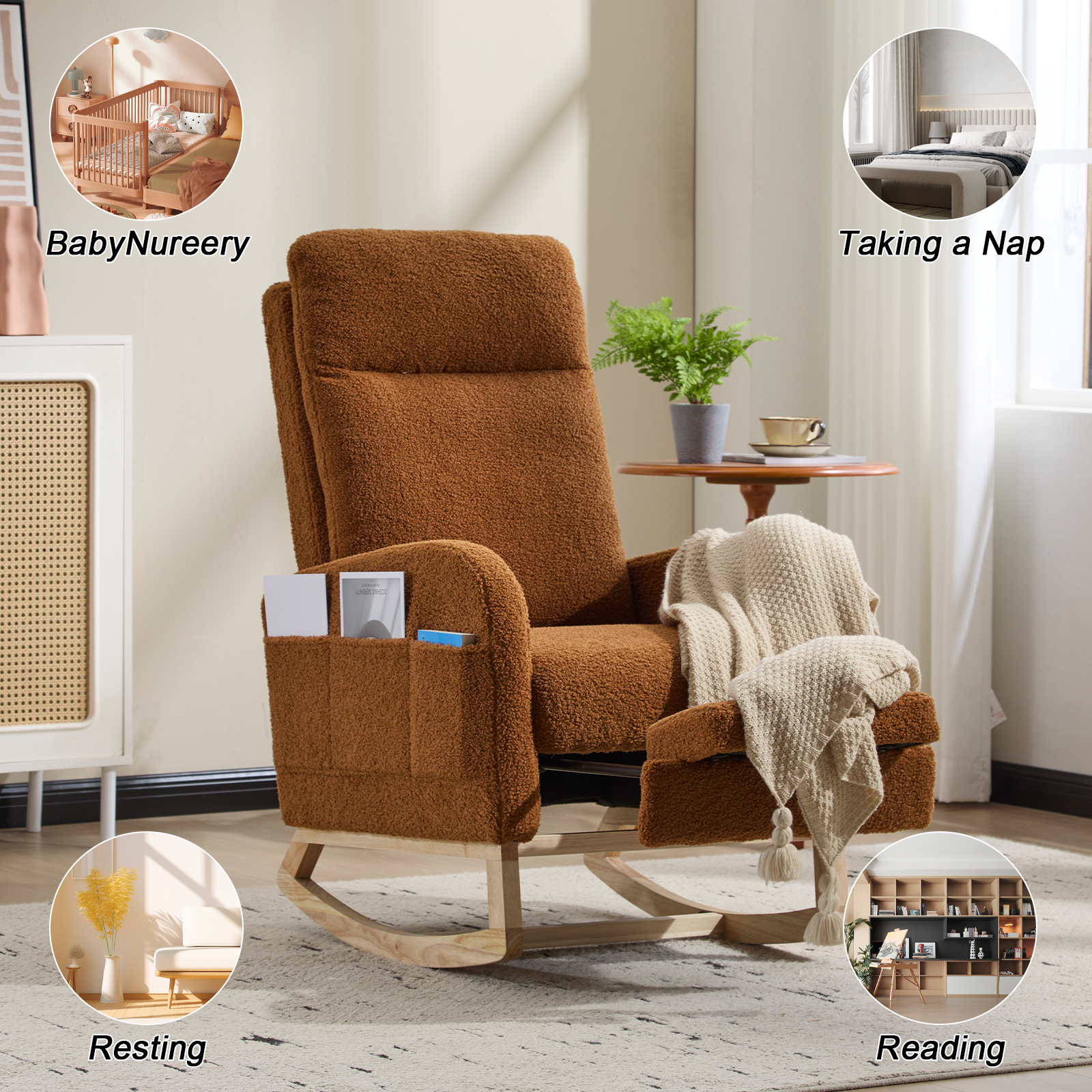 CAFORKP Rocking Chair, Upholstered Glider with High Back and Wood Base, for Nursery and Bedroom, Brown