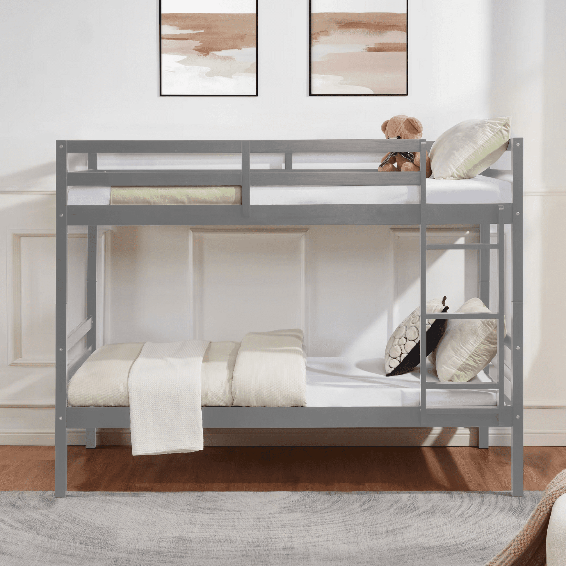 CAFORKP Solid Wood Bunk Bed for Kids with Safety Guardrail, 400 lbs Weight Capacity - Grey