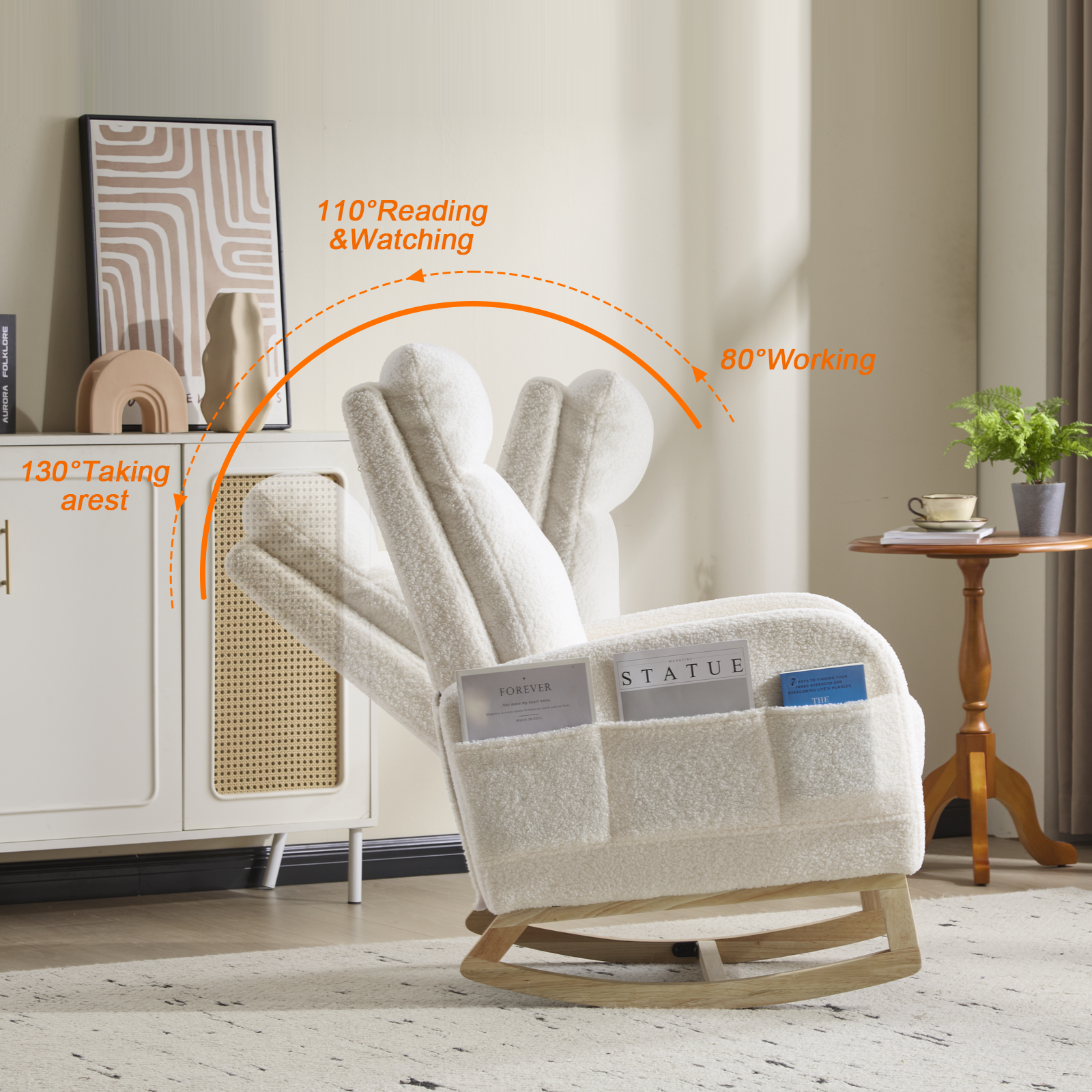 CAFORKP Upholstered Rocking Chair with High Back and Side Pocket, Nursery Glider for Living Room, White